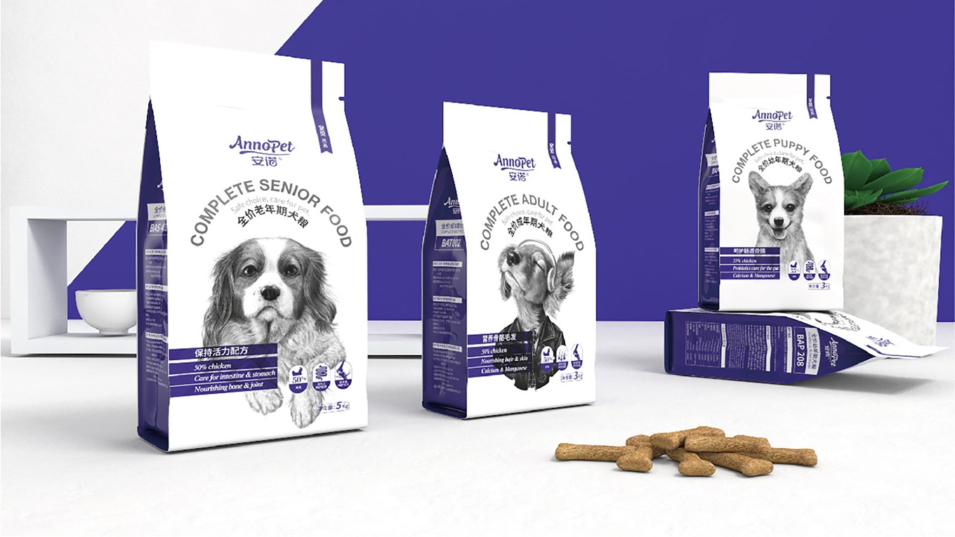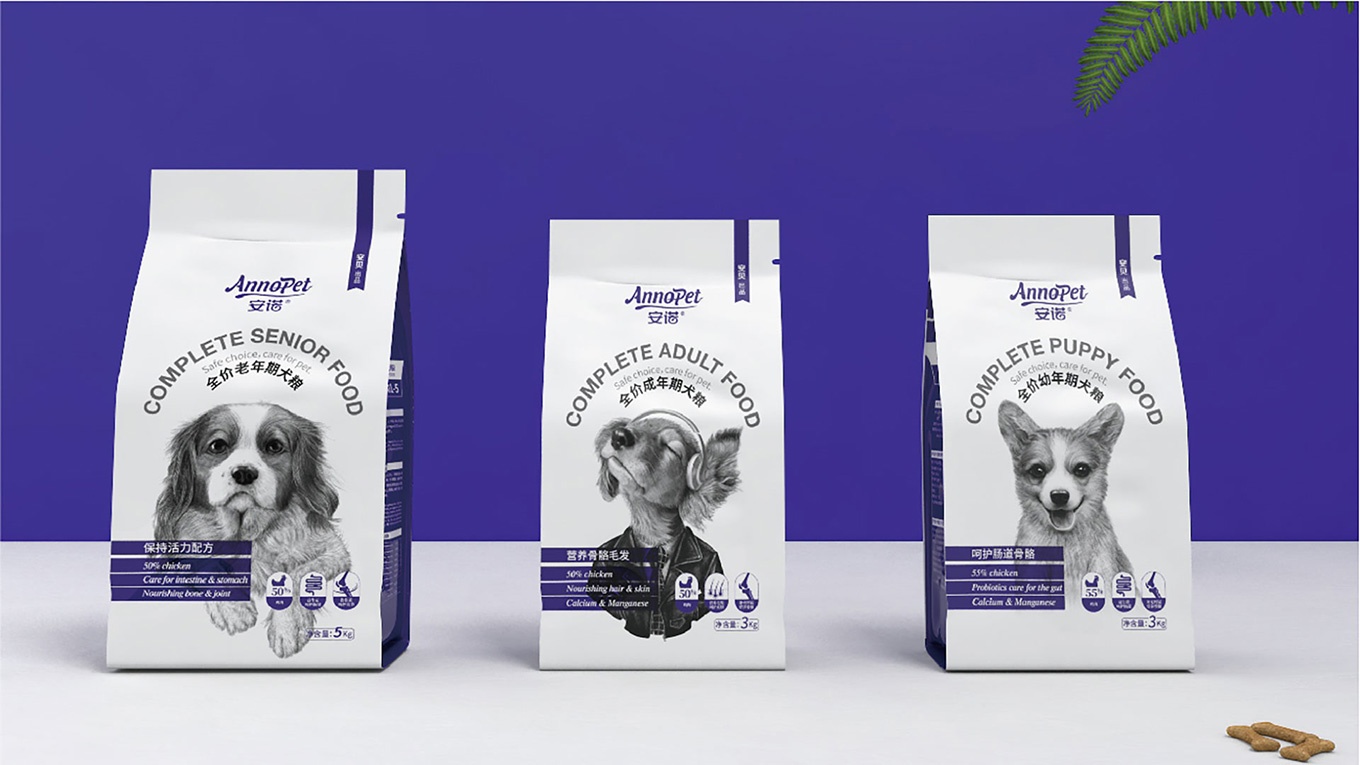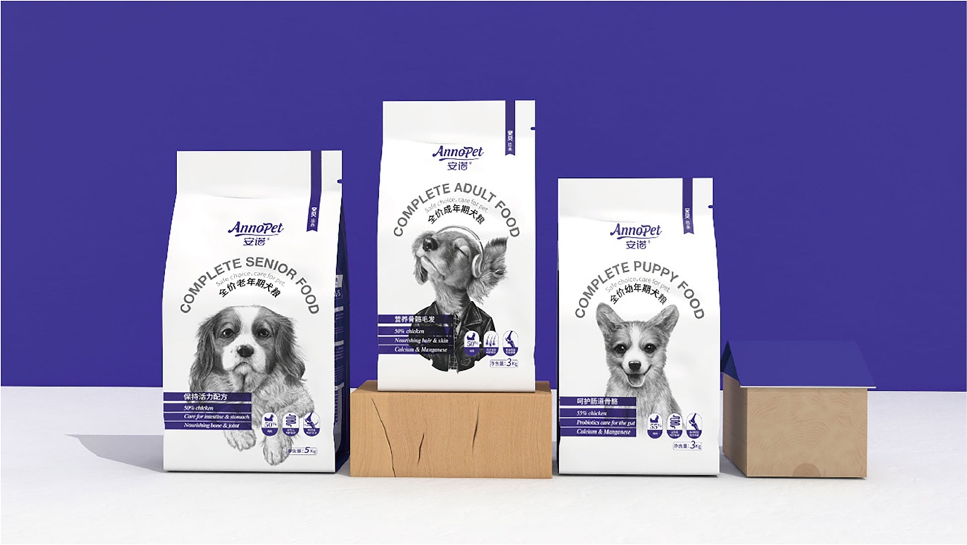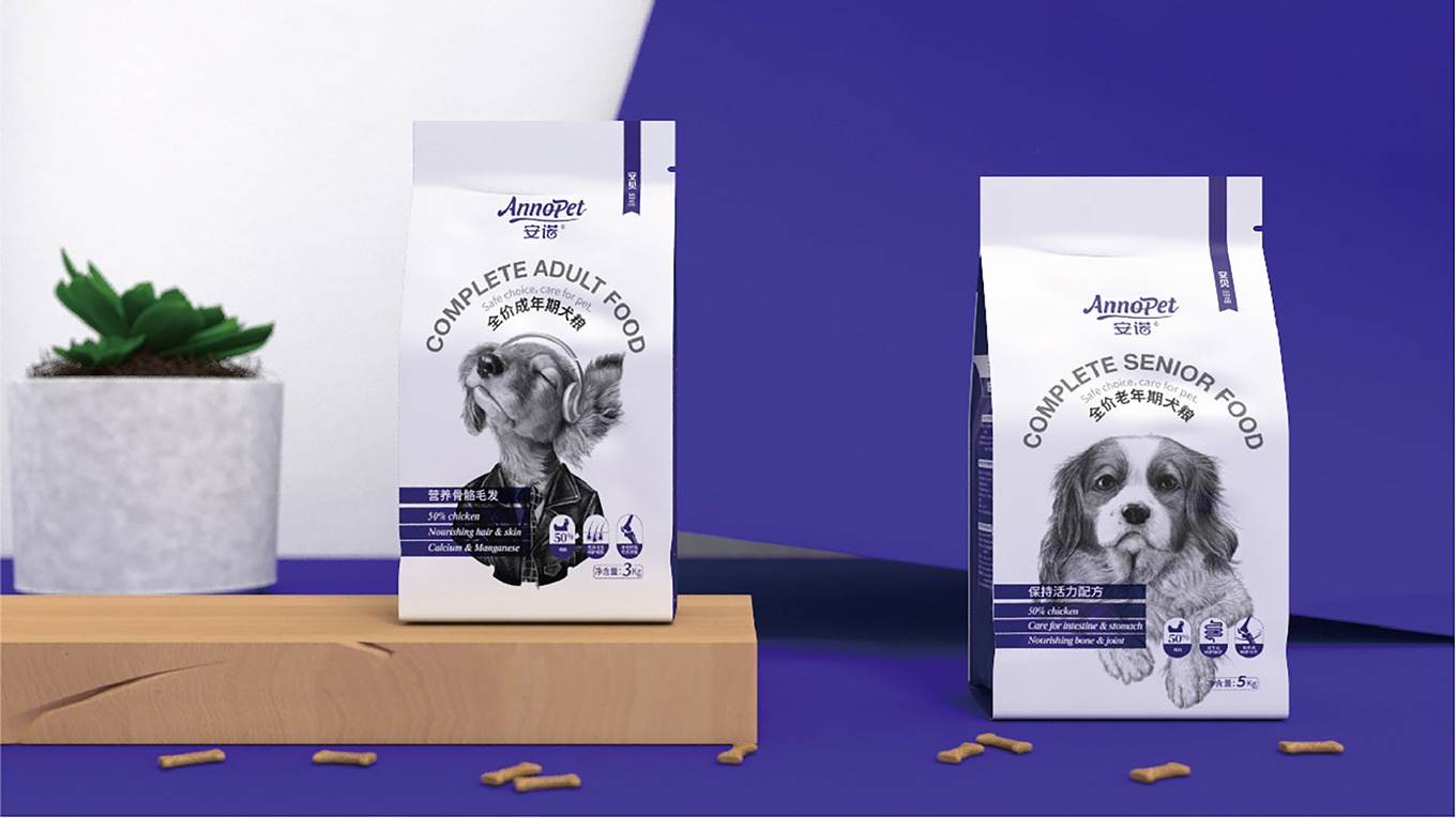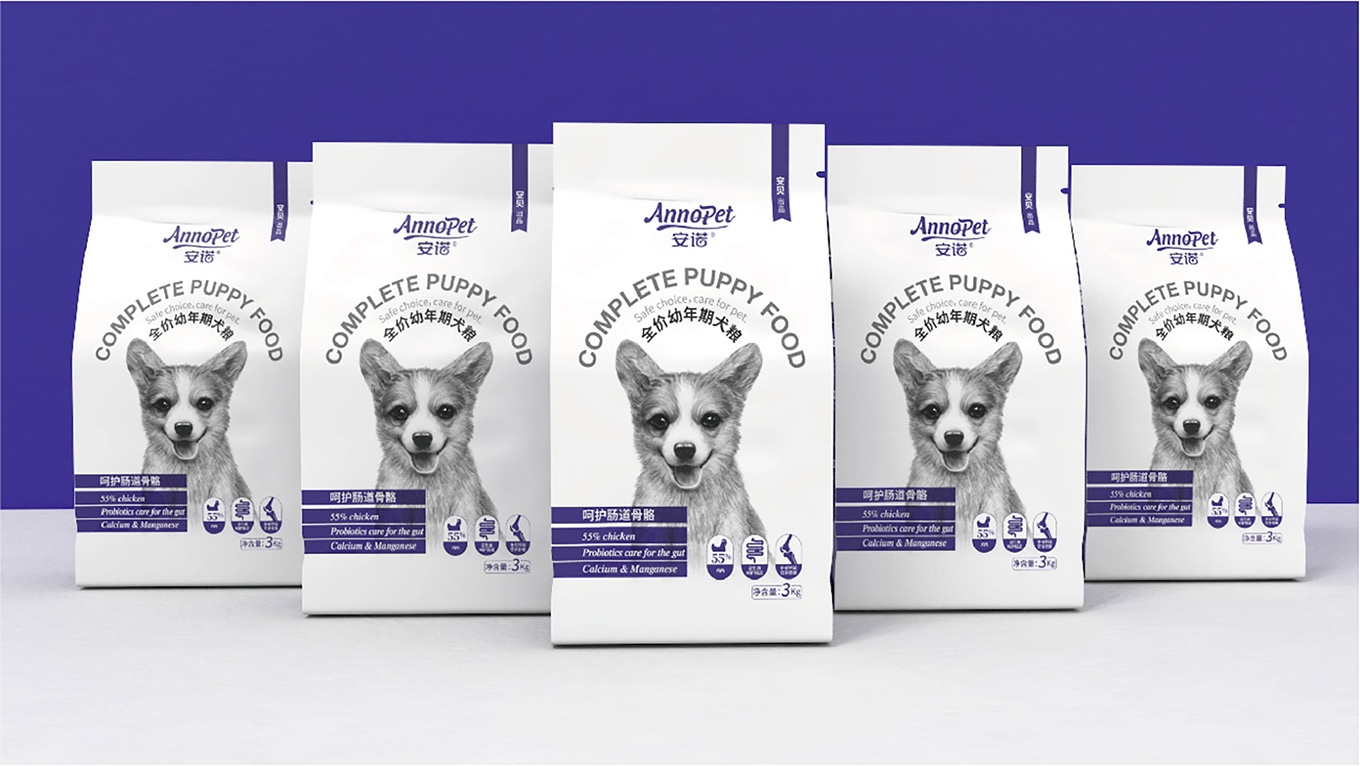 與安諾本次進(jìn)行合作,對(duì)安諾全價(jià)狗糧系列產(chǎn)品進(jìn)行包裝視覺(jué)形象上重塑提升,全力打造出高端、高品質(zhì)的狗糧系列。