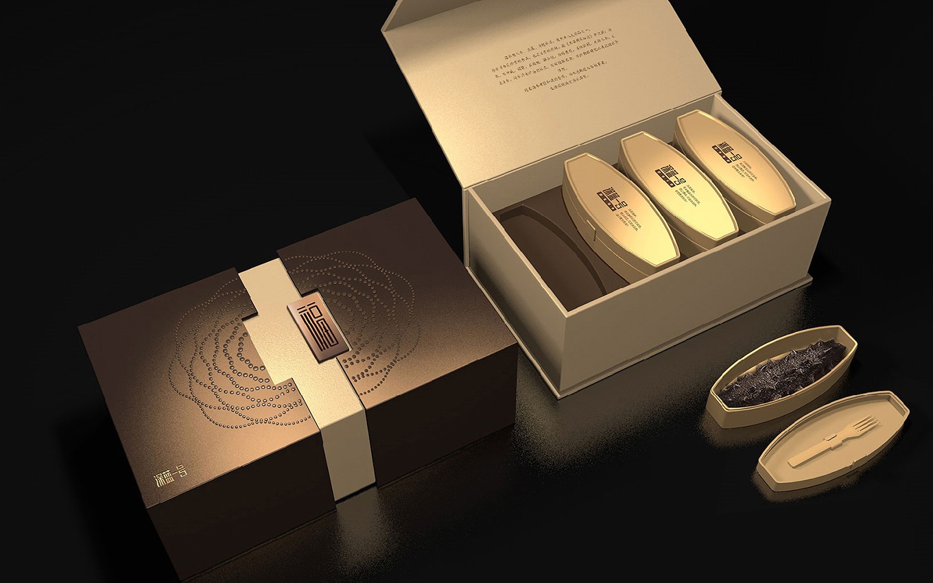 在此次海參禮盒的包裝設(shè)計中,我們以中國傳統(tǒng)文化為創(chuàng)意出發(fā)點,注入了壽、福、燕、祿等寓意美好生活的祝福言語,滿足創(chuàng)新消費人群對于個性化需求的追求。同時,我們結(jié)合高端禮品所需具備的氣質(zhì)和儀式感,設(shè)計出了一款高品質(zhì)的海參禮盒包裝。
